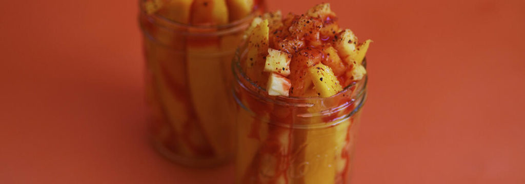 Refreshingly sour, frozen treats can be made with or without alcohol. Mango and Pineapple Chamoy and Tajin