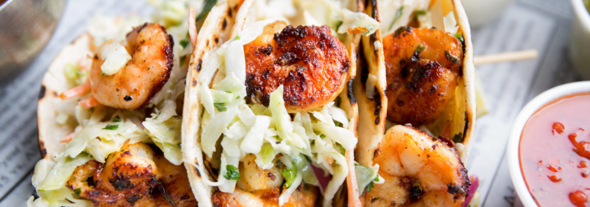 - Street Tacos. Still very much on-trend, these hand-held favorites can be filled with a multitude of proteins or vegetables and topped with shredded cabbage, sliced avocados, roasted tomatillos, radish sticks, and charred corn.