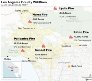 A series of devastating wildfires that started on Tuesday are severely impacting traffic flows and causing significant loss of life and property in the Los Angeles area. The state of California has issued a State of Emergency as more than 27,500 acres and over 1,000 homes have burned in Los Angeles County.